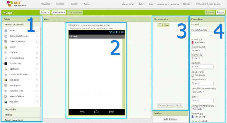 La plataforma que utilizaremos se llama App Inventor, y se ve de la siguiente manera.